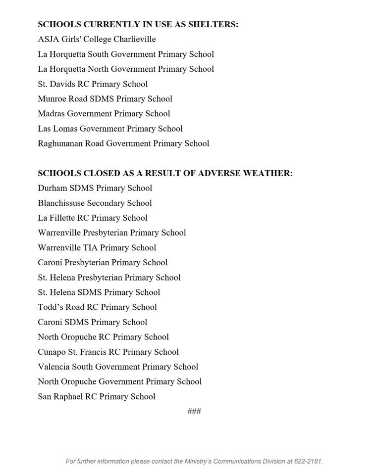 The public is also reminded that the procedure for flood relief funding includes needs assessments which will be conducted by the Regional Corporations and this information will be communicated to the Ministry of Social Development and Family Services, where verification will quickly take place to provide the necessary relief.